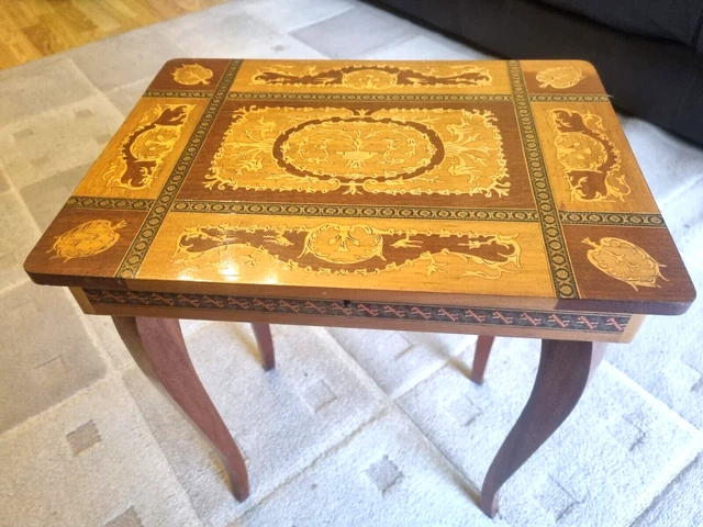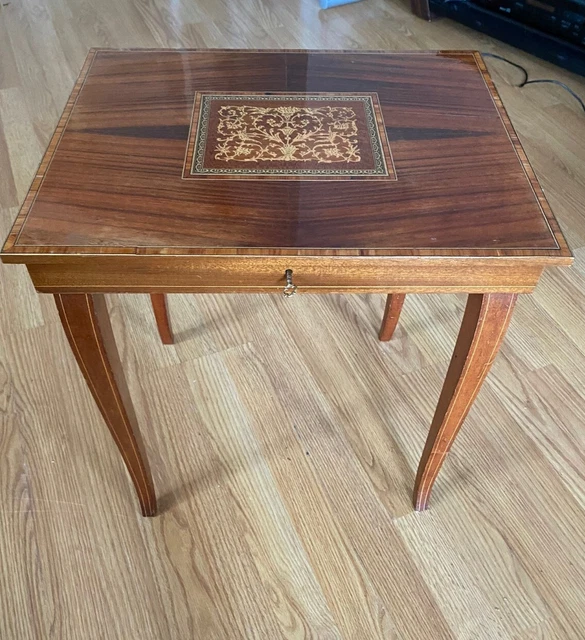 Vintage Italian Sewing Musical Side Occasional Table Inlaid Lacquered Marquetry 19 95 Picclick Uk